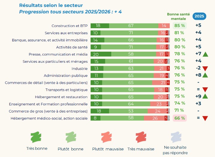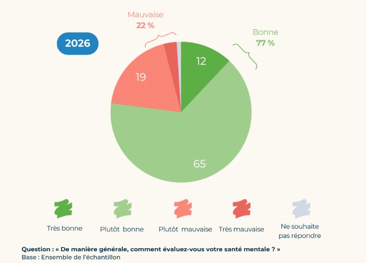 Bonne nouvelle en ce mois de janvier où l’on s’adresse nos meilleurs voeux de santé : la santé mentale des travailleurs français est meilleure qu’en 2025. Selon le baromètre Qualisocial santé mentale et QVCT 2026*, dévoilé le 15 janvier, 22% des travailleurs s’estiment en mauvaise santé mentale, contre 25% l’an passé. « La situation s’améliore nettement, après une période covid qui a provoqué une dégradation durable de la santé mentale, analyse Camy Puech, président fondateur du cabinet Qualisocial. Aujourd’hui, l’enjeu est de retrouver un niveau de santé mentale des travailleurs comparable à ce qu’on pouvait observer avant la crise sanitaire, ce qui devrait être le cas en 2030. »