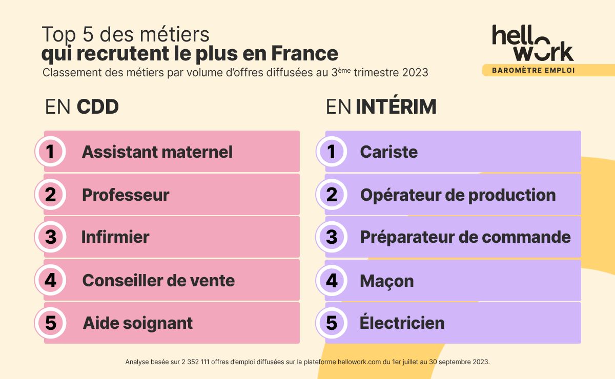 Pourtant, même si « le marché d’emploi est sur une ligne de crête, ce troisième trimestre nous confirme que les ambitions de recrutement des entreprises n’ont pas cessé », constate David Beaurepaire, Directeur Délégué de HelloWork.