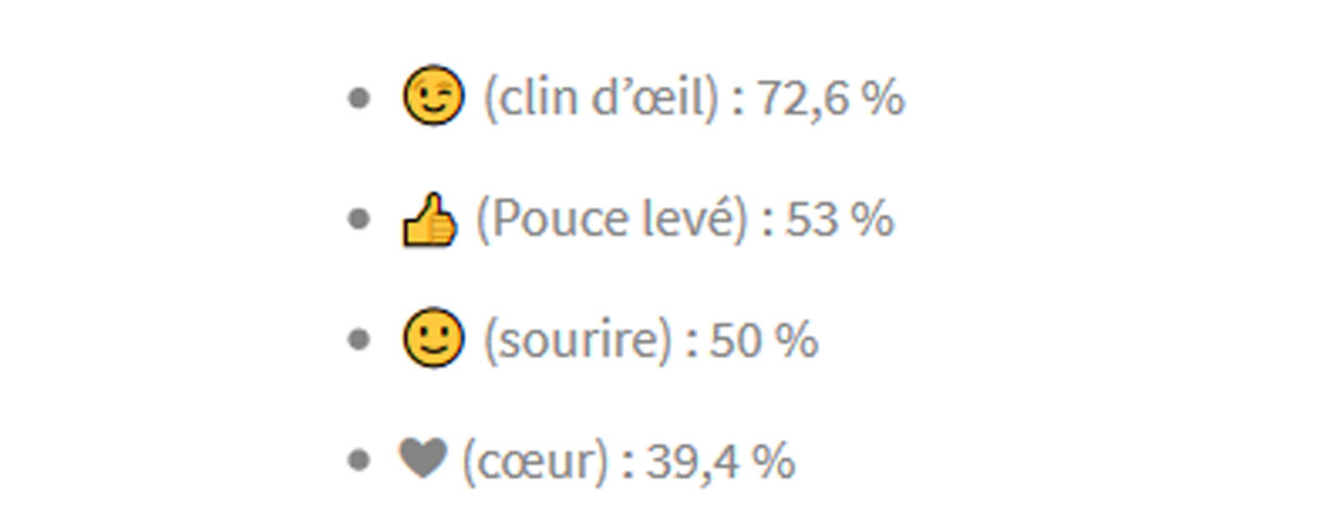 Quant aux emojis, les plus utilisés sont :