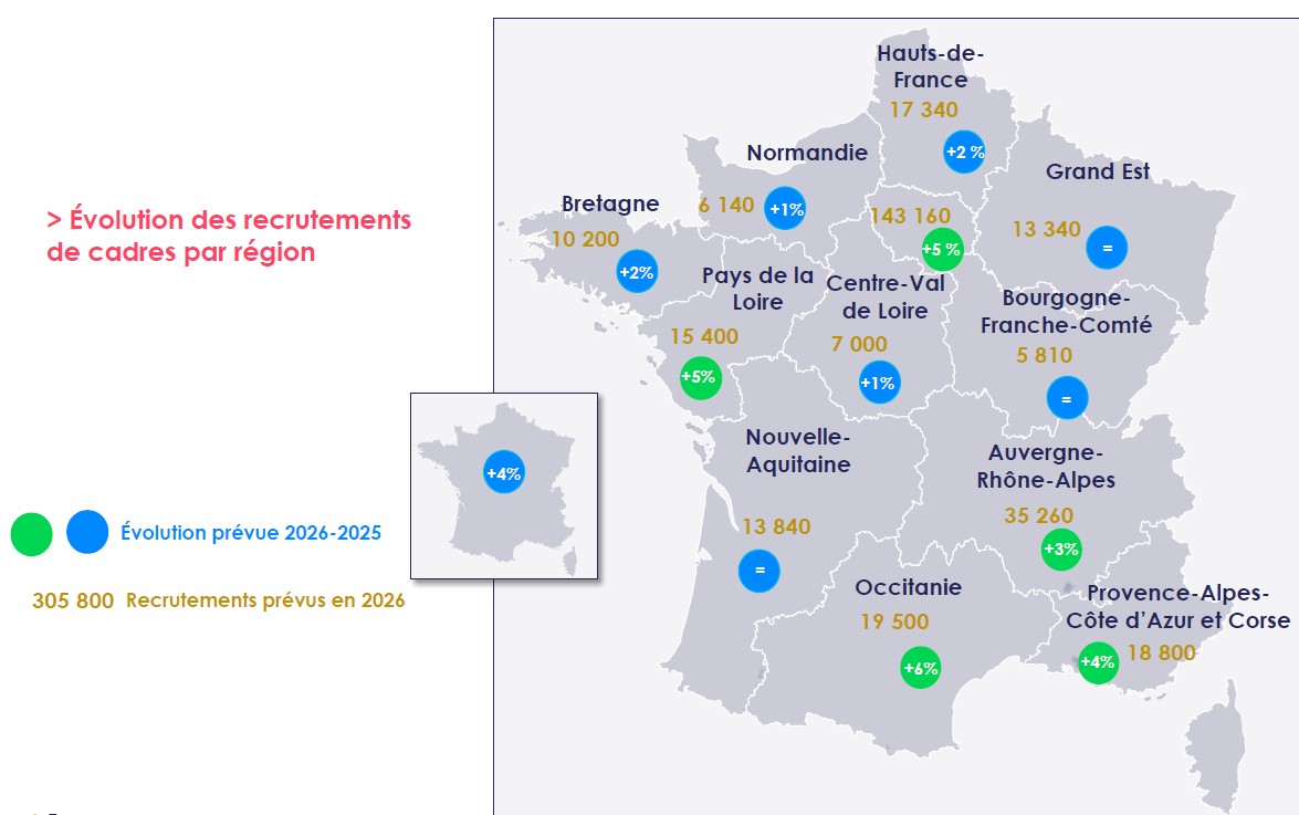 Où les embauches de cadres vont-elles le plus repartir à la hausse en 2026 ?