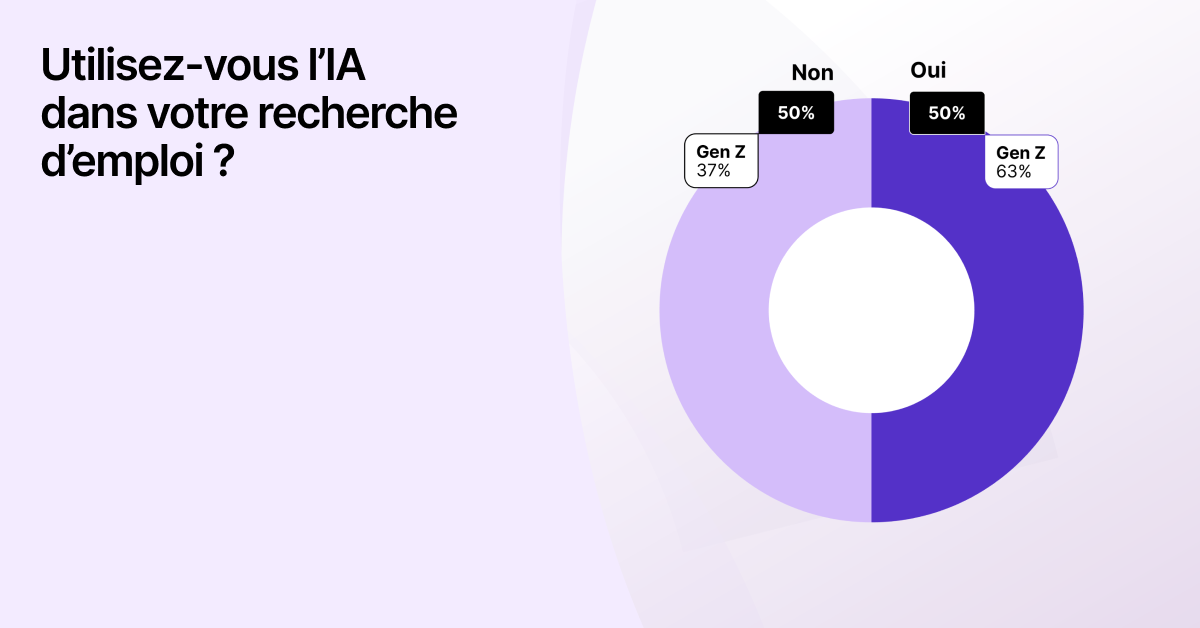 73% des candidats âgés de 16 à 29 ans considèrent que l’IA va changer la manière dont ils exercent leur métier. C’est 9 points de plus que parmi l’ensemble des candidats interrogés. La génération Z perçoit davantage cette technologie comme une opportunité que comme une menace. Elle en a d’ailleurs fait un véritable allié de sa recherche d’emploi : 63% des jeunes l’utilisent pour trouver leur futur job, contre 50% toutes catégories d’âge confondues.