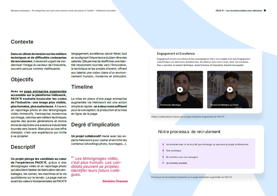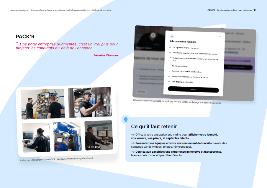 Ce livre blanc vous propose 10 études de cas sur lesquelles vous appuyer pour concevoir, déployer et piloter votre stratégie de marque employeur. Car la marque employeur ne se décrète pas : elle se construit dans la durée, s’ancre dans la sincérité et se révèle à travers chaque interaction.