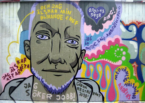 Une belle initiative qui joint l’utile et l’art de la rue, à laquelle Ruskig est habitué puisqu’il a déjà proposé son coup de main à des étudiants de l’école des arts urbains de Malmö (Suède) dont il s’occupe (voir graffs ci-dessous) et s’engage pour de nombreuses causes qui lui sont chères. Marie, française de 62 ans, fait elle partie des heureux élus du festival pour lequel Ruskig est invité. Cette formatrice en espagnol galère à trouver un emploi depuis l’année dernière. Mais son visage est désormais sur l’un des murs du skate park des Chartrons à Bordeaux. Le festival a d’abord contacté sa conseillère en insertion qui a tout de suite pensé à Marie pour participer à ce « projet atypique ». Elle a même mis la main à « la bombe » au participant au graff de Ruskig. Une expérience inédite pour elle qui n’a pas manqué de mettre du piment dans sa recherche d’emploi…