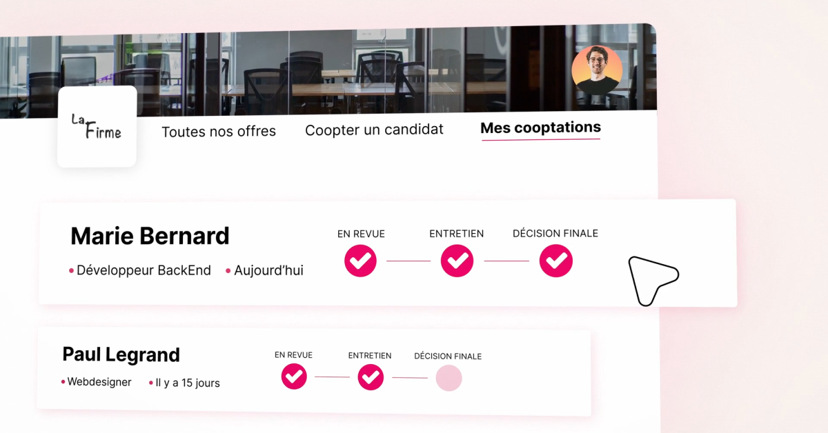 Sur ce portail, vos collaborateurs peuvent aussi suivre en temps réel l’avancée de leurs cooptations et accéder à leurs statistiques de coopteur. Les meilleurs d’entre eux peuvent aussi être récompensés dans le cadre d’un challenge, à activer sur les périodes de forts recrutements.
