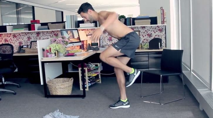 Le mannequin Noah Mills a réalisé avec la version américaine du site Vogue une vidéo de 1mn30 nous montrant ce que faire du sport au bureau veut vraiment dire. Alors prêt à enchaîner squats, pompes et autres crunchs ? Si c’est le cas, vos collègues se gaineront à coup de barres de rire !